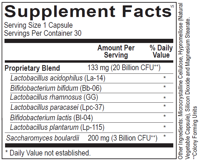 Ultra Probiotic includes a carefully assembled cast of probiotic organisms to support microflora balance and maintain a healthy environment for vitamin uptake and optimal immune function.